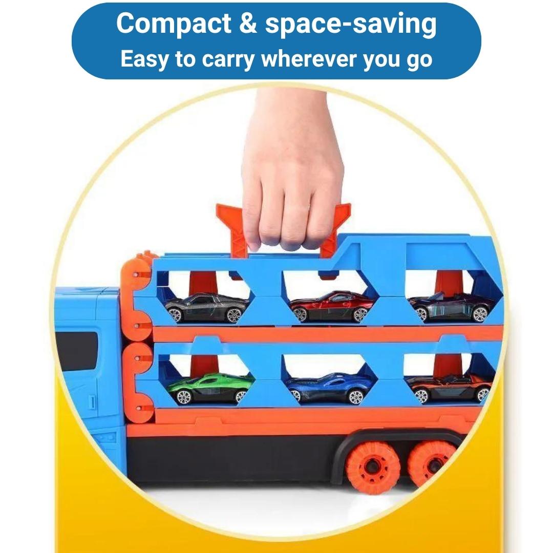 3-in-1 Car Transporter Truck with Racetrack & Toy Cars